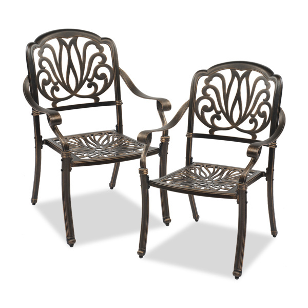 5. Exquisite Design: The hollowed-out floral pattern on the backrest and the antique bronze finish add an elegant touch to your outdoor space.