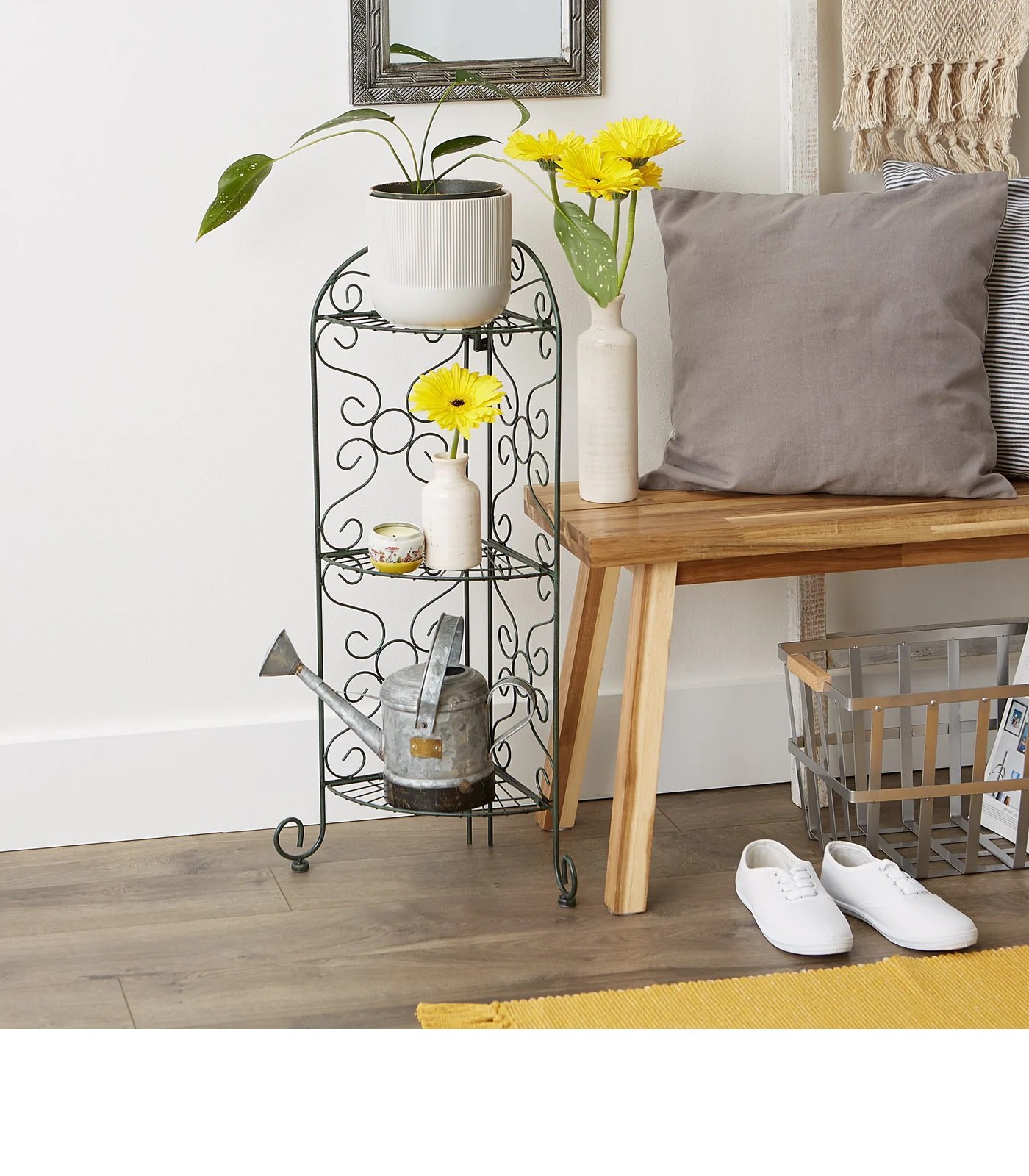 Elevate your indoor or outdoor plant display with this stylish and functional 3 Tier Corner Plant Stand. Made from durable materials, this space-saving stand is perfect for showcasing your plants in any corner of your home or garden. With its sturdy construction and attractive design, this plant stand is a must-have for any plant lover looking to add a touch of elegance to their space. Perfect for displaying a variety of plants, flowers, herbs, and more, this versatile stand is sure to enhance the beauty of your botanical collection. Add a touch of greenery to any corner with this 3 Tier Corner Plant Stand.