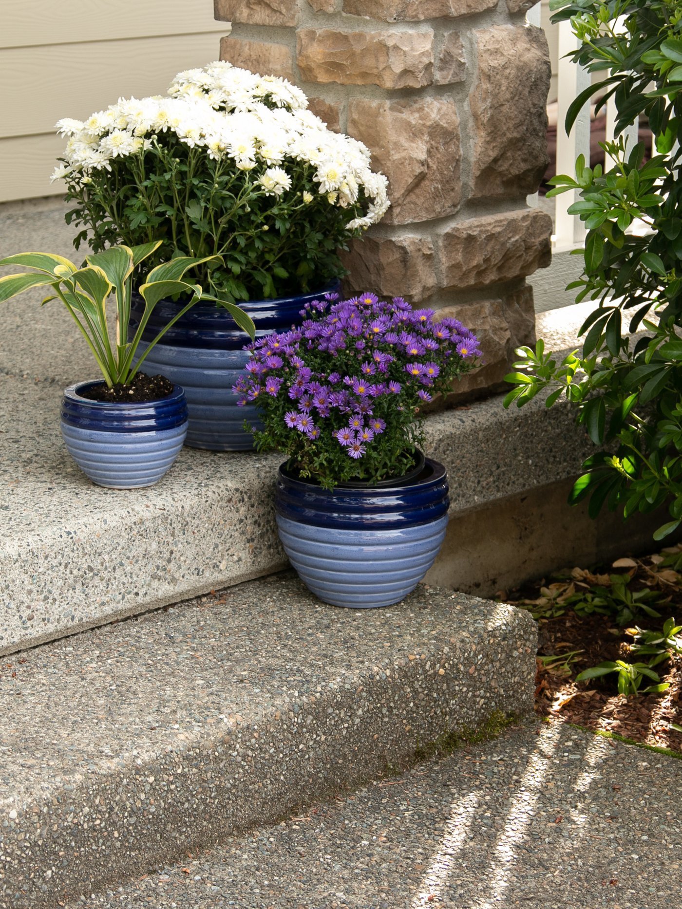 • House your plants in these stylish blue tone planters. This set of ceramic planters includes three pots of various sizes in a serene two-tone blue finish so you can mix and match.