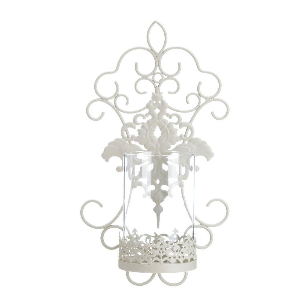 • Delicate lace and intricate scrollwork features make this ivory wall sconce a romantic lighting accent for any room.