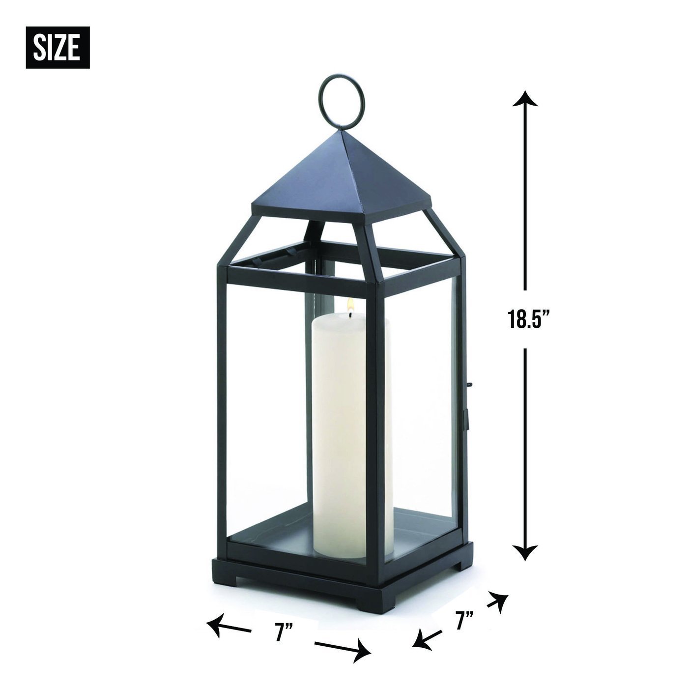 • The lantern weighs 4 lbs. and measures 7 inches by 7 inches by 18.5 inches.