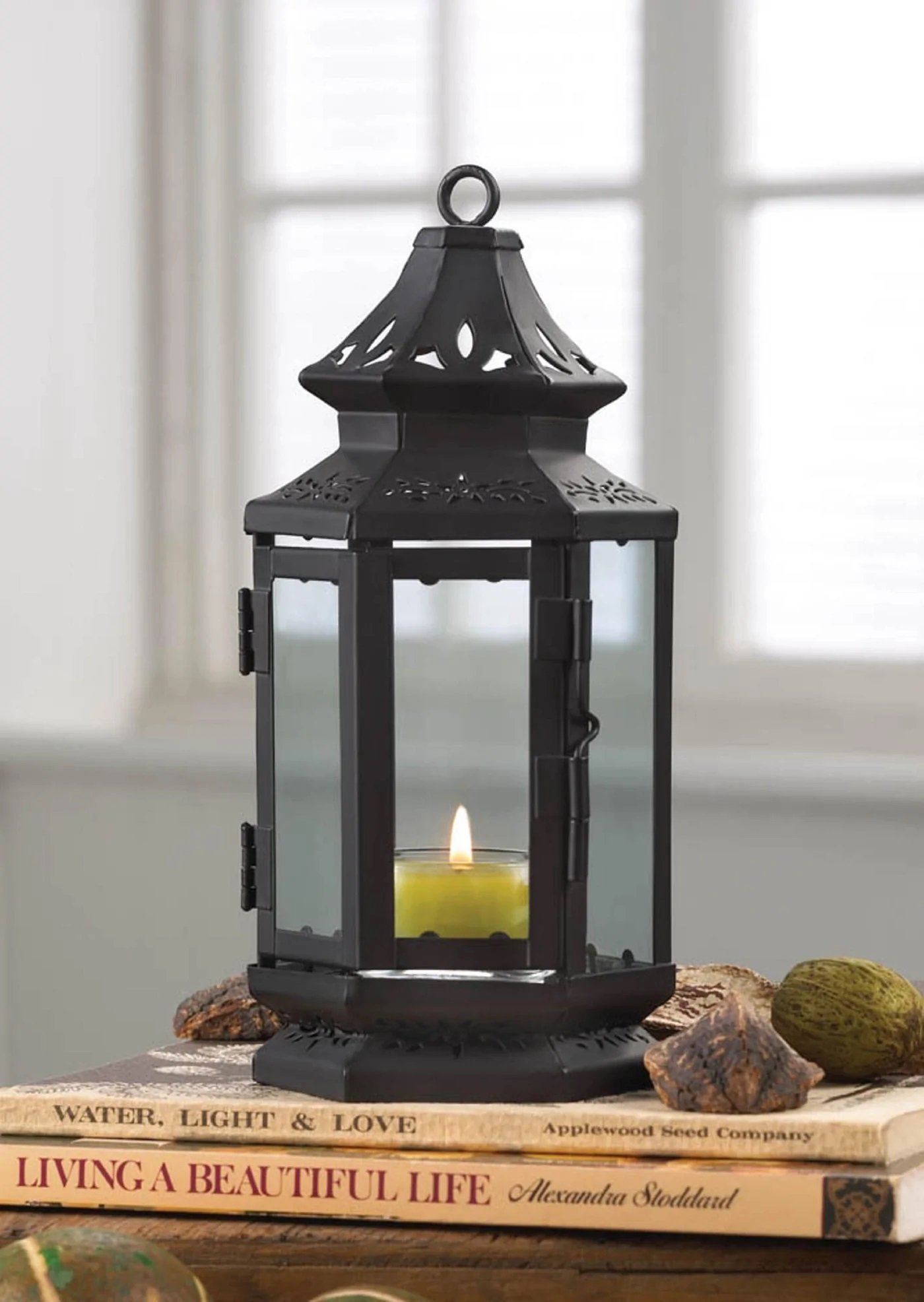 • Relive the romantic days of stagecoach travel, when candle lanterns blazed brightly through the night. A nostalgic bit of Old West décor, prettied up with floral cutwork details.